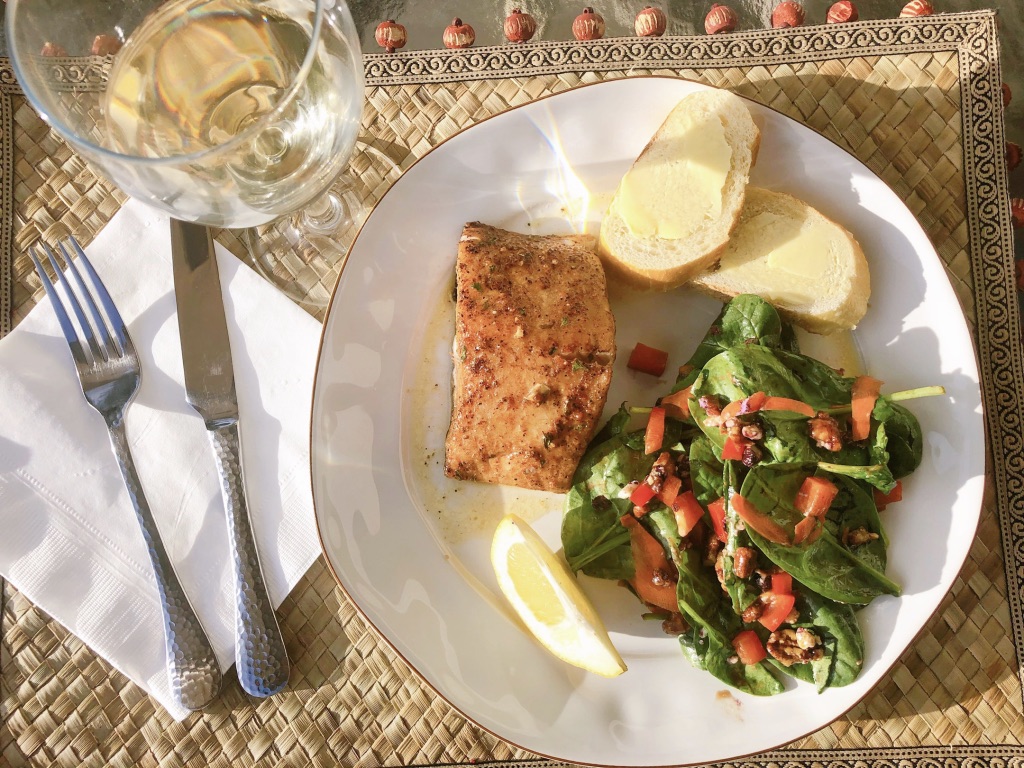 So for the very first inaugural meal, Peter went full gourmet. He prepared a beautiful meal for three using a recipe from the Traeger website: Smoked Chilean Sea Bass by Doug Scheiding. We wanted to try our first recipe the way Traeger intended us to cook. Therefore, we bought the Traeger brand rubs and Traeger Wood Pellets at Atkinsons’ Market in Hailey. I was absolutely shocked by how easy and perfect this meal turned out. It was very flavorful, buttery texture, cooked to perfect, with just a hint of smokiness. Delightful! So good in fact, that I am requesting Peter make this dish again for company next week!